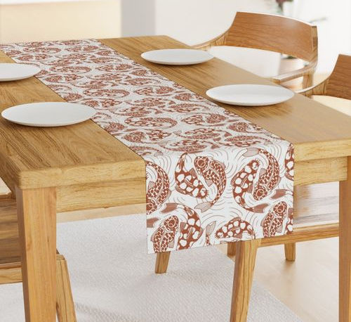 Art Nouveau Catfish Circling Quirky Japandi Line Art Mahogany Rust Red and White