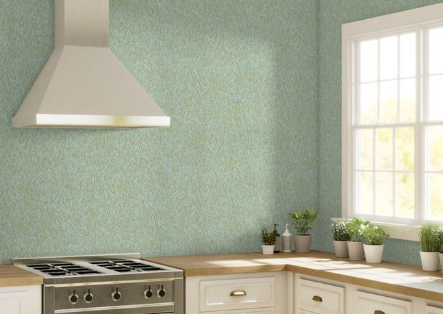This composition stems from amazing marble wall paneling I saw in Walhalla near Regensburg, featuring fascinating petrified coral structures with numerous fine, irregular, branching elements in a faded aqua blue and muted golden yellow.