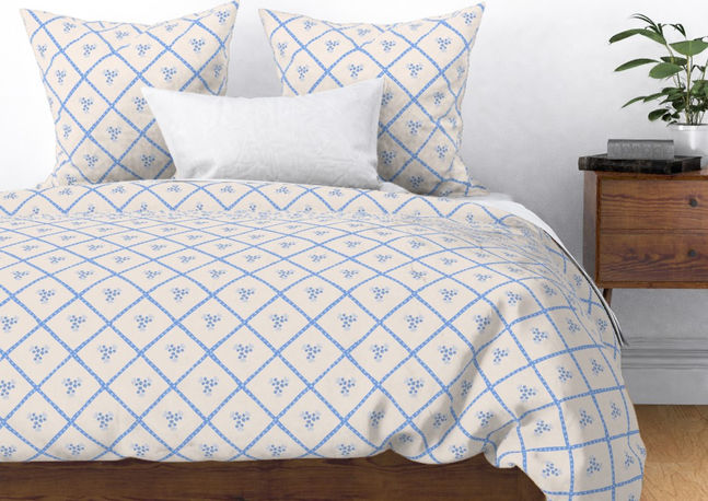 Folk-Art Blueberry Diamond Lattice - Pastel Blue Grid on Cream White