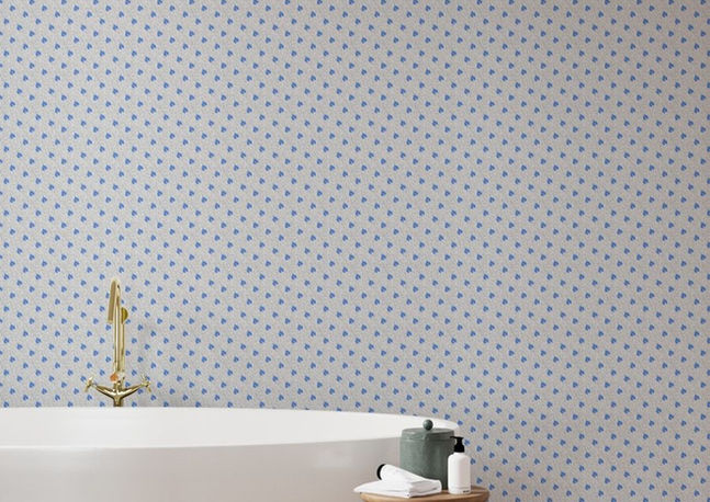 This elegant minimalist organic composition features serene fan-shaped ginkgo leaves falling, delicately arranged on faux-linen texture to show off nature's calm beauty in a palette of vibrant blue on light gray with dashed charcoal lines.