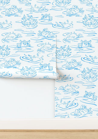 Cute cyan blue line-art piggies all around for nursery & home decor! Check out those piglets having a summerly swim. Butts up! This playful quirky design is perfect for bedding, apparel and home decor that will make kids - and hopefully, everyone's inner kid, too - smile every time.