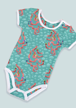 Meet a happy gang of soft pink earthworms that don't mind a bit of sunshine, curling up in ogee shaped clusters! This cheeky design on fresh light teal is full of movement and fun. Use it as a quirky accent in your nursery, on gardening accessories or apparel. Some worms might even smile at you when you do your composting! You'll be sure to get some comments from fellow nature enthusiasts and illustration lovers alike.