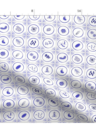 Marvellous Microbes Ornamental Science Core Faux Dutch Tiles Inky Delft Blue