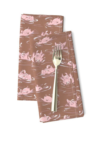 Cute Piglets Swimming Soft Pink on Cocoa Brown Mocha Mousse