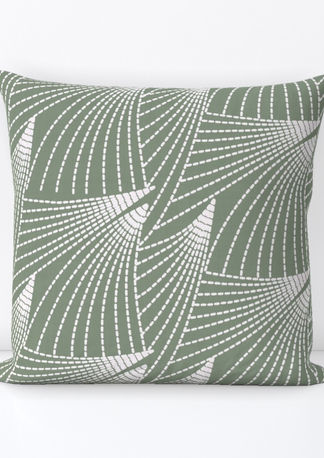 Dynamic Fanned Sashiko Thorns Japandi Crisp White on Antique Pewter Green