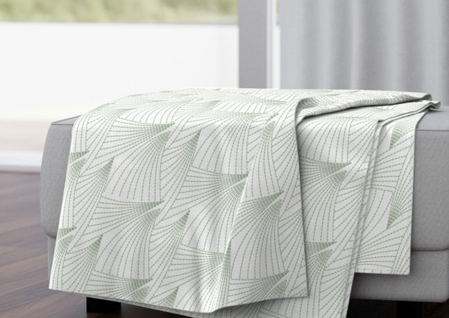 Dynamic Fanned Sashiko Thorns Soft Sage Green on Crisp White
