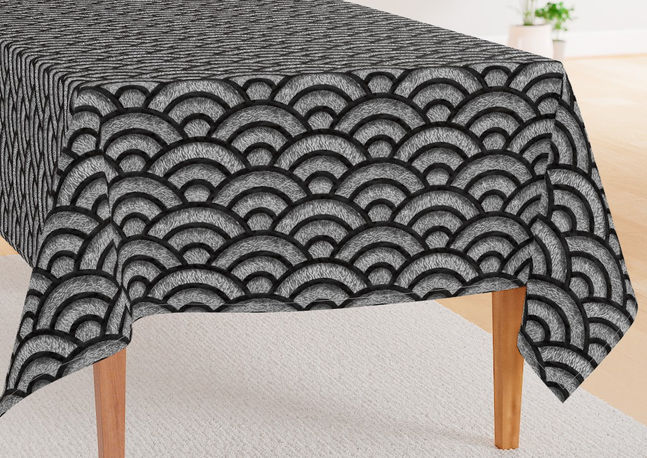 Coral Marble Reef Seigaiha Waves Scallop Arcs Obsidian Black White Gray