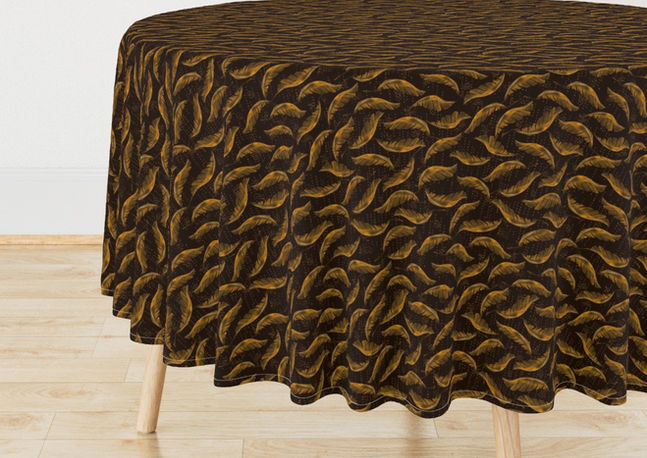 Time for some moody tropical flair with this botanical banana leaves in golden maple shades on dark brown ground, suffused with streams of golden dots or brushstrokes!